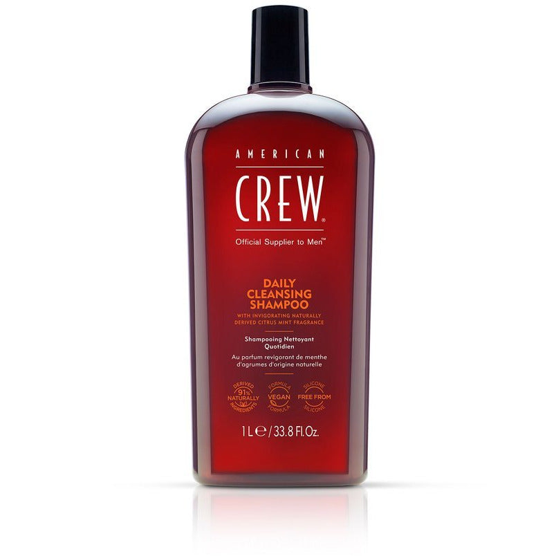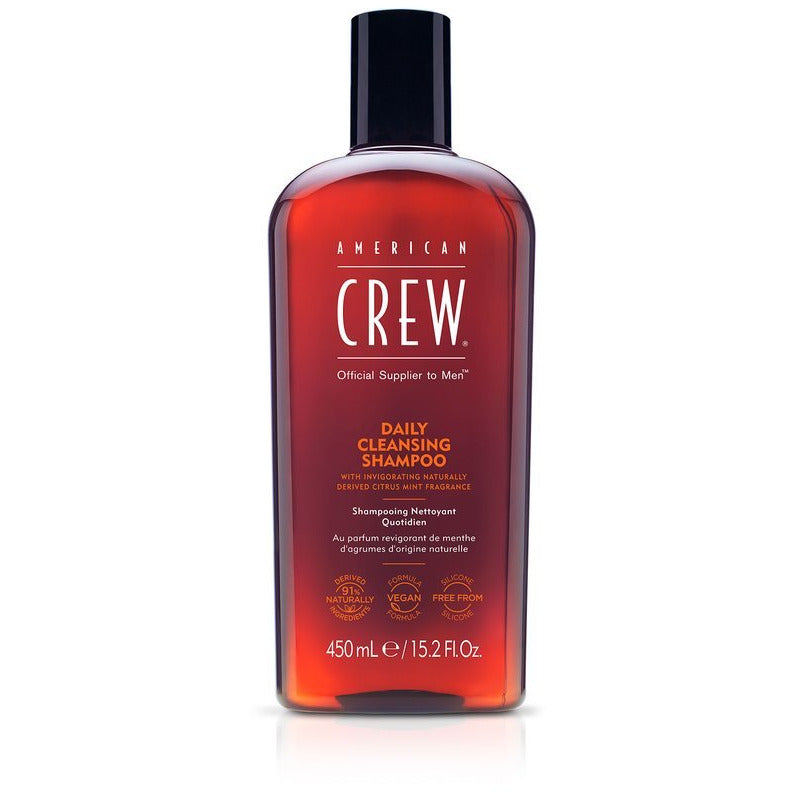 Enriched with Vitamin B5 for moisture, our silicone-free Daily Cleansing Shampoo is ideal for an everyday haircare routine. The nondrying vegan formula washes away excess oil, leaving hair more manageable, looking healthy, and feeling soft. Infused with our energizing, naturally certified American Crew Citrus Mint signature fragrance. Best for men with normal to oily hair and scalp.