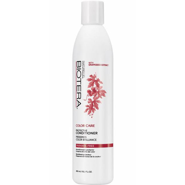 Biotera Color Care Protective Conditioner is paraben-free and gently replenishes moisture and radiance to color-treated hair. Infused with a powerfully protective antioxidant complex with Grapeseed Extract, to help keep hair color vivid and prolong color brilliance. Infused with 100% more botanicals and extracts. Color-safe.