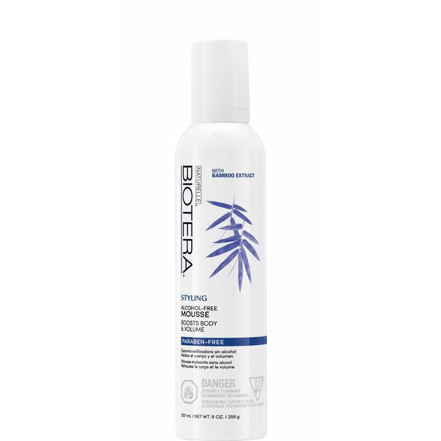 Biotera Alcohol-Free Mousse is a paraben-free, lightweight body-building foam blended with enduring bamboo extract to provide all-day volume, hold and shine. Gently restores the beauty and radiance to all hair types without build-up, flaking or stickiness. Infused with 100% more botanicals and extracts. Color-safe.