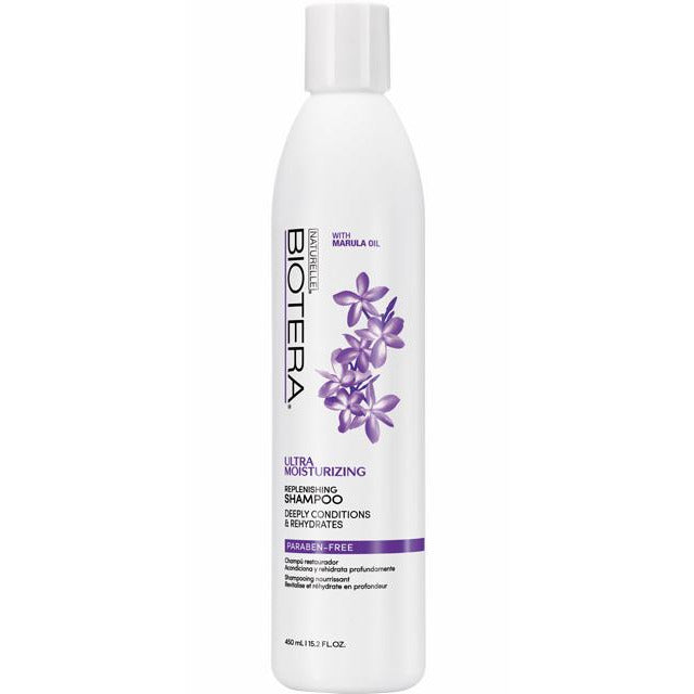 Biotera Ultra Moisturizing Replenishing Shampoo is paraben-free and blended with intensely restorative marula oil to gently cleanse and deeply condition very dry, damaged hair. Infused with 100% more botanicals and extracts. Color-safe