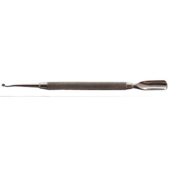This Professional Pusher has a spoon on one side and hollow tip on the other. It allow you to clean you to clean the dirt from under the nail and the hollow tip allow for a very fine and sharp edge. The hollow end is 3/8" wide.