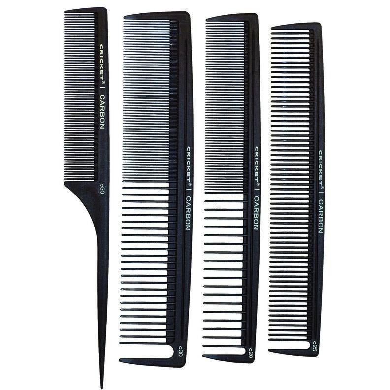 Cricket® Carbon Combs are one of the lightest, strongest, most durable combs in the professional industry. Because of the composition of the carbon material, they are static free. This eliminates fly-away hair during the cutting process. Cricket Carbon Combs weigh less than an ounce which ensures ultimate comfort during usage. Cricket Carbon Combs are manufactured with "seamless teeth": which guarantees smooth flow through hair and eliminates snagging and pulling