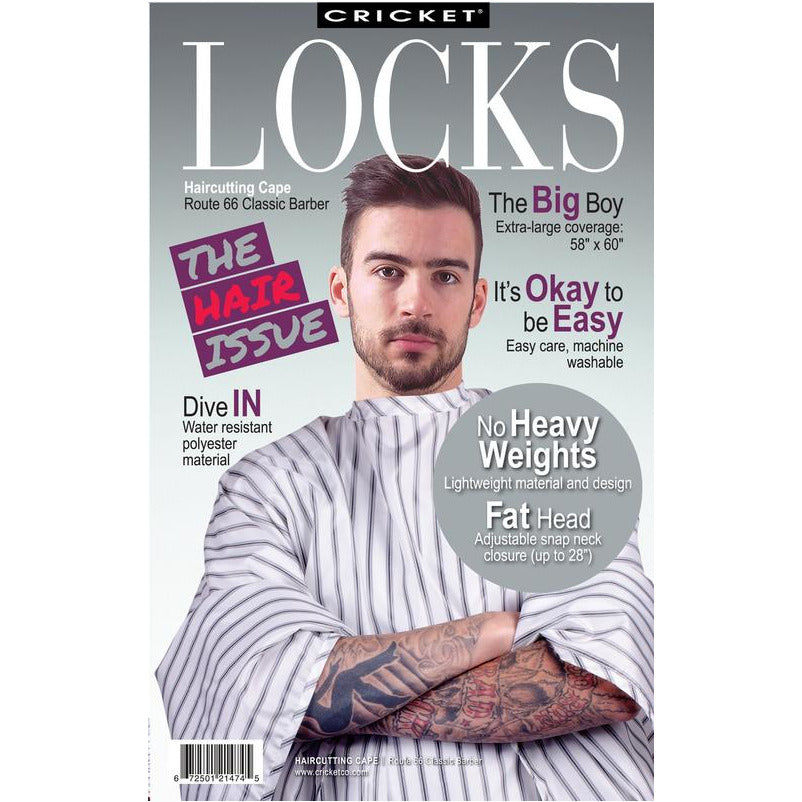 The classic barber shop cape! Barber pole or not, our Route 66 Haircutting Cape wraps your clients in nostalgia while protecting their clothes! Large size (58" X 60") and an adjustable snap neck closure (up to 28") to comfortably and securely fit everyone. The lightweight polyester material is water-resistant to keep your clients dry from the shave to the haircut, and then easily launders in the machine!