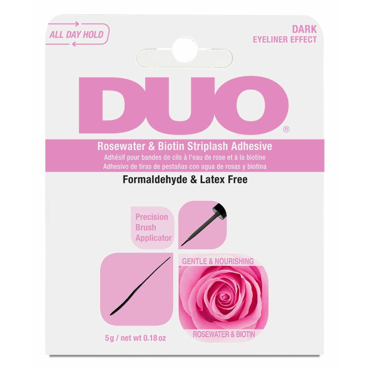 DUO's dark striplash adhesive features a nourishing formula that's infused with biotin and rosewater and is both formalehyde and latex free! Same iconic long-lasting hold.