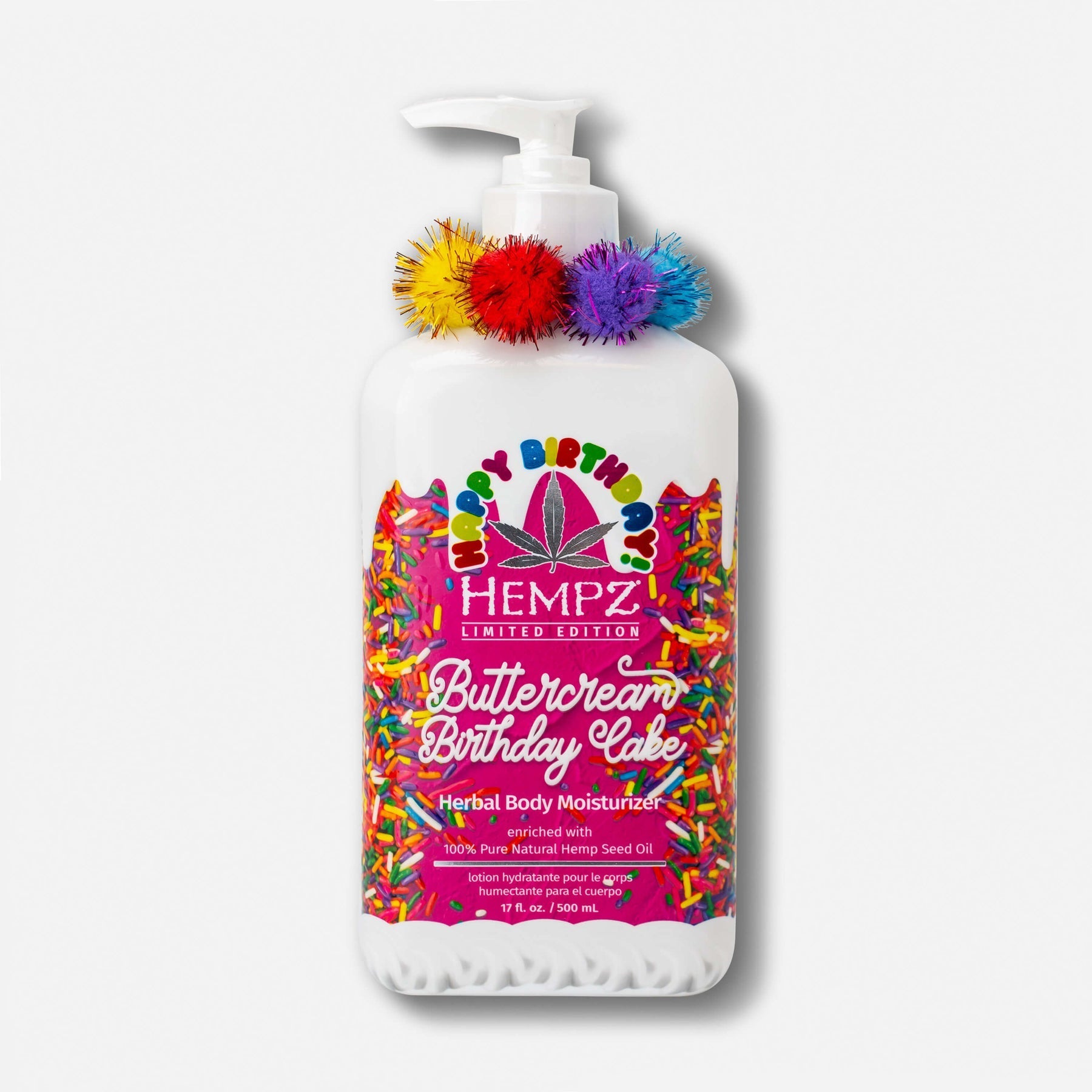 This takes the cake! Our new sweeter-than-sweet birthday lotion hydrates with 100% pure hemp seed oil and keeps skin subtly scented with a buttercream birthday frosting fragrance. Removeable pompon hair ornament included.