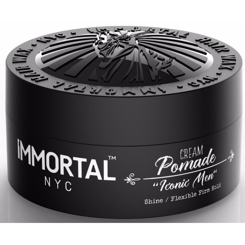 Immortal NYC Cream Pomade - "Iconic Man" delivers perfect holding power and natural brightness. This formula has ingredients that help repel moisture so your hair style keeps looking great, through a workout or on the beach. 150ml./5.07 fl. oz.