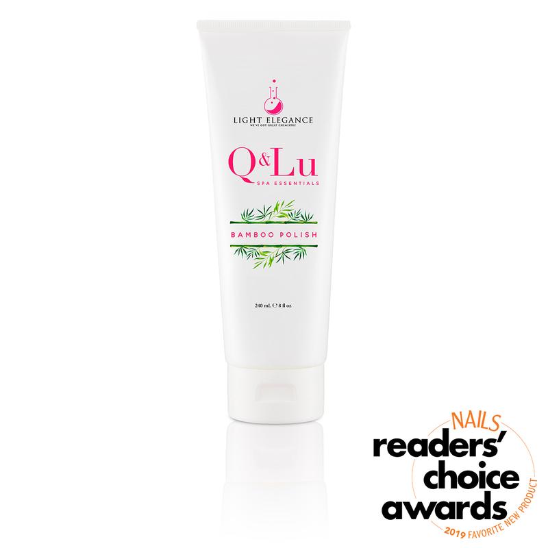 Q&Lu Spa Essentials Bamboo Polish Contains natural bamboo, volcanic ash, along with lavender and tea tree essential oils to eliminate dry skin, increase circulation and soften skin.