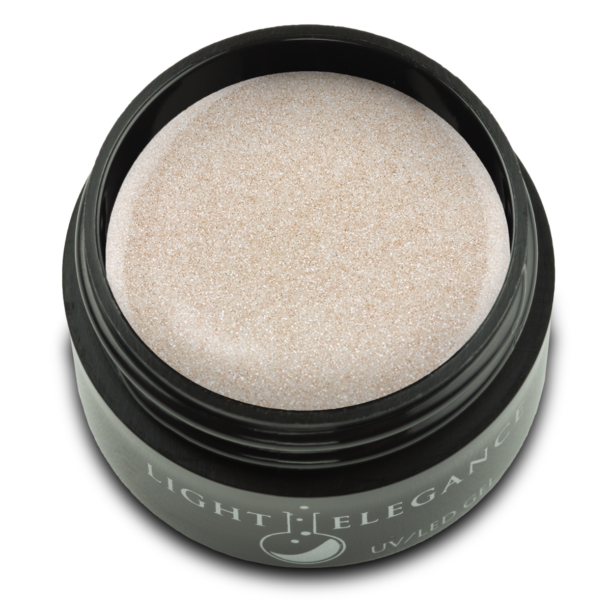 A light buff-neutral glitter with really fine iridescent sparkles. This takes a soft neutral and adds a touch of fun innocence!