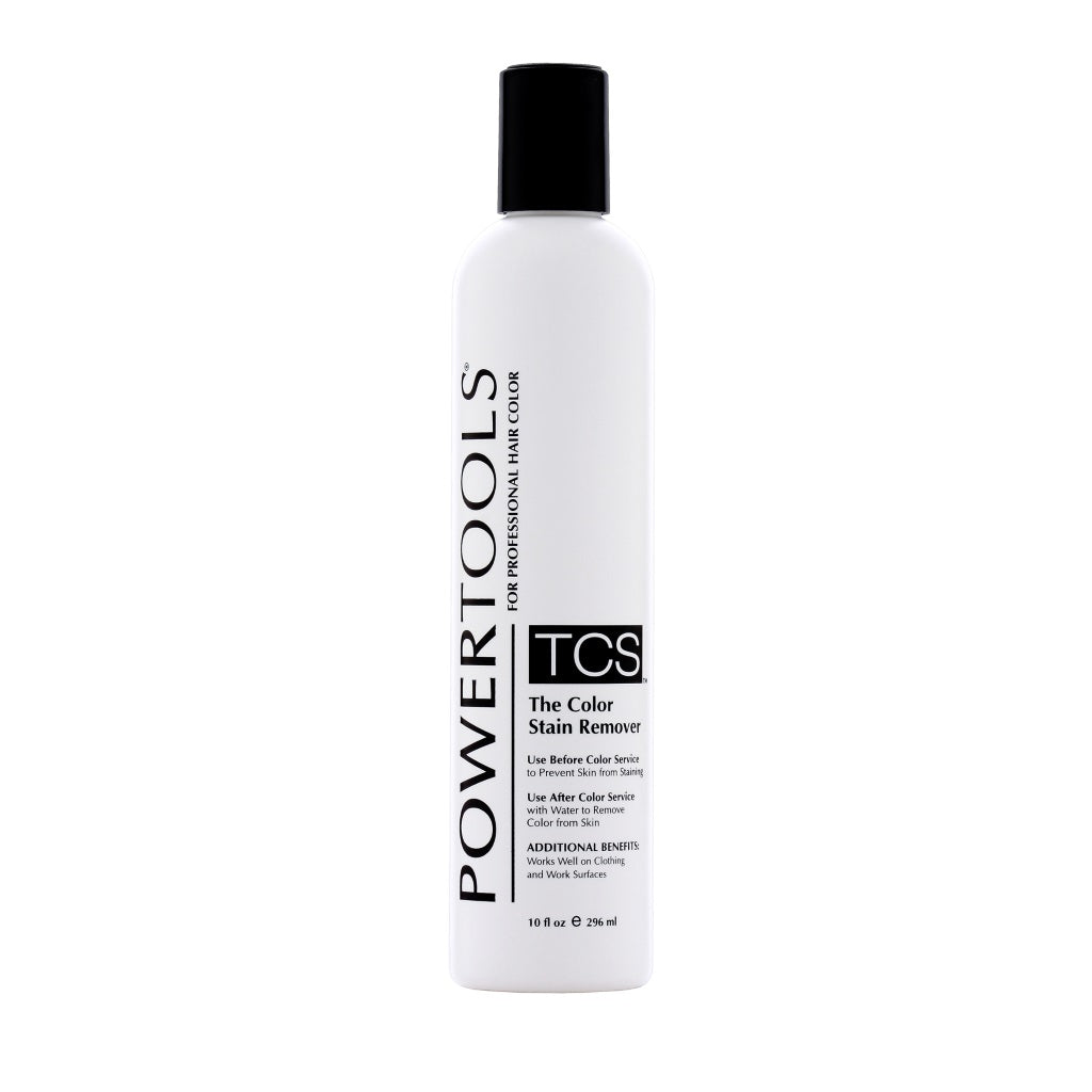 The Color Stain Remover, TCS, is a technologically advanced all natural barrier cream used before applying hair color to protect the hairline from staining. This dual-purpose formula can also be used afterwards to remove excess color from skin, clothing, equipment, work surfaces and color embedded in nail cuticles.