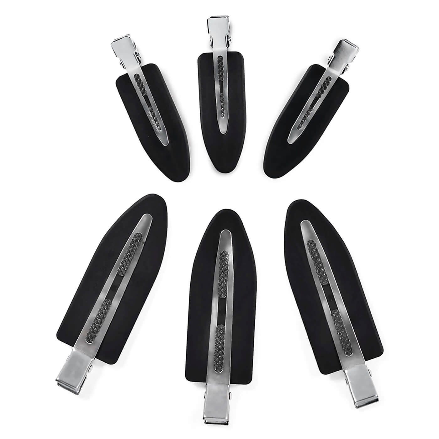 Securely holds hair without leaving annoying creases or dents. Smooth, plastic covering over a stainless steel base that protects hair, and won't crease foils or disturb color processing. Great for sectioning shorter hair, setting styles after drying, and keeping bangs and flyaways off the face during makeup application. A must-have for any colorist, stylist, or makeup artist. Includes 6 small and 6 large clips. 12 pk.