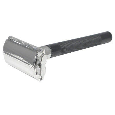 Provides a smooth, close shave without irritation. Double-edged stainless steel blade design. Head of razor easily opens to replace blade. Non-slip grip handle. Includes 5 replacement blades.