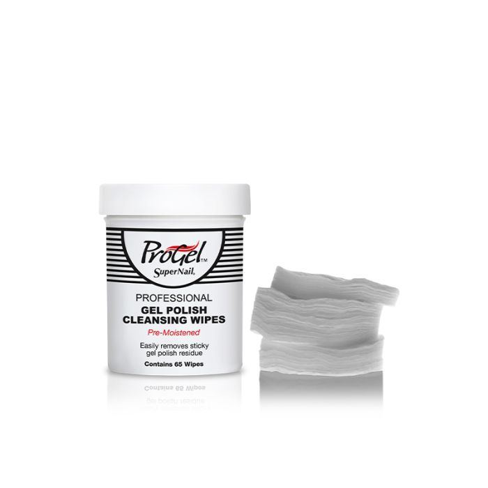 SuperNail pre-moistened ProGel Cleansing Wipes removes sticky gel residue from ProGel Top Coat, leaving a mirror-like glossy finish.