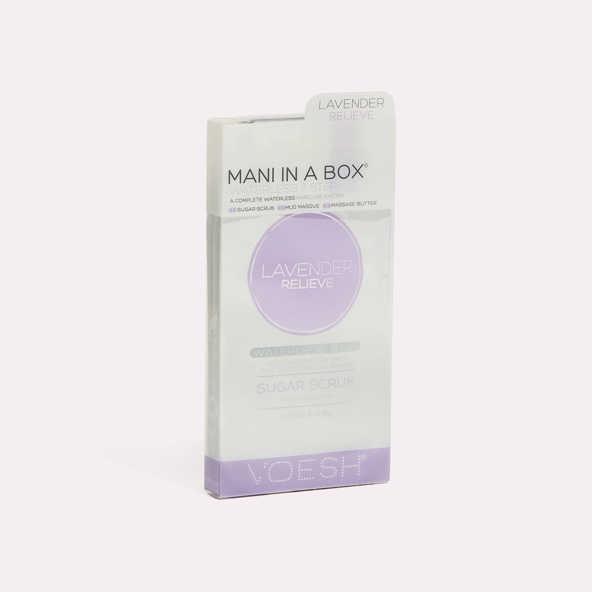 Go la-la lavender over our Lavender Relieve Mani in a Box Waterless 3 Step. This all-in-one spa manicure kit is infused with natural lavender extract to drift you away to dreamland for an ultimate relaxation experience! Keep calm and mani on with our Lavender Relieve manicure that nourishes and de-stresses both your mood and dry skin. Infused with natural lavender extract, this easy mani makes self-care so simple, you’ll look forward to giving yourself me-time on the regular. Just don’t be surprised if you drift away into total bliss.