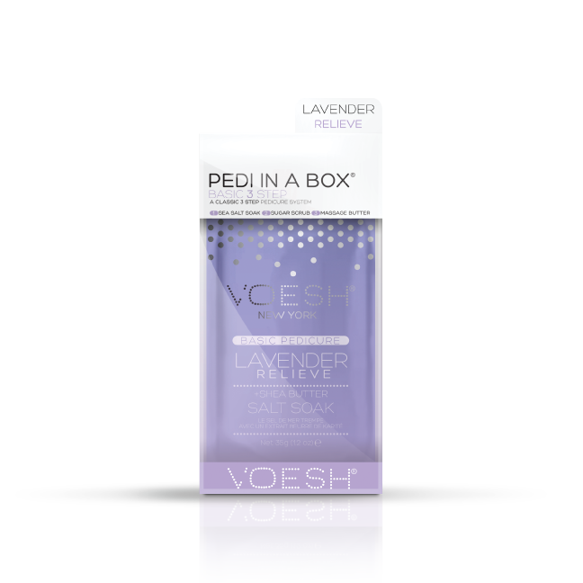 Help your clients relax with this lavender-scented, 3-step pedicure kit. Create a stress-relieving spa pedicure experience for your clients with our single-use Pedi in a Box. The nourishing products, infused with lavender for calming benefits, are designed to exfoliate and soften skin in three simple steps.